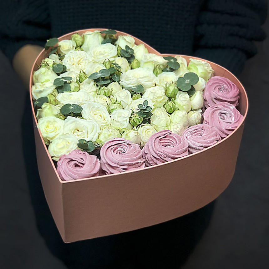 Коробочка с розами и зефиром «Сладкий аперитив» - это уникальное произведение искусства от профессиональных флористов службы доставки цветов в Киеве azalya. Выбирая коробочку с розами и зефиром «Сладкий аперитив» вы сможете удивить подружку авторской комп