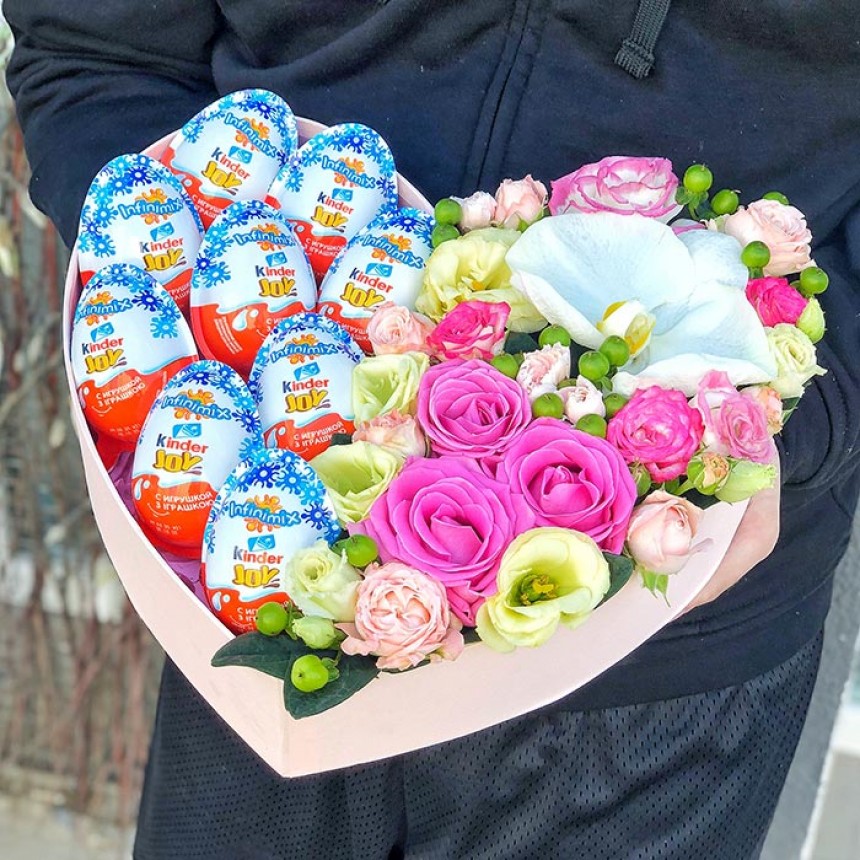 Сердце с цветами и киндерами «Сицилия» - это уникальное произведение искусства от флористов служба доставки цветов в Киеве и по Украине azalya. Выбирая сердце с цветами и киндерами «Сицилия» вы сможете удивить девушку авторской композицией. Доставка вашего сердца с цветами и киндерами «Сицилия» по Киеву, крупным городам как Львов, Винница, Николаев и другим городам Украины осуществляется на сколько возможно быстро. Наша фирма осуществит все что необходимо чтоб вы получили самый лучший результат, а все остальное мы берем на себя!