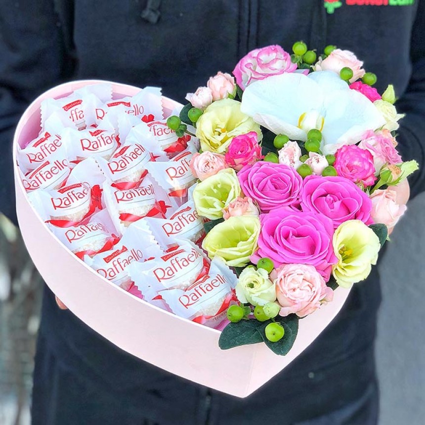 Сердце с цветами и конфетами «Афина» - это красивое произведение искусства от опытных флористов службы доставки цветов в Киеве. Выбирая сердце с цветами и конфетами «Афина» вы сможете удивить подружку небанальной композицией. Доставка сердца с цветами и конфетами «Афина» по Киеву, крупным городам как Харьков, Тернополь, Кременчуг а так же другим городам Украины производится в самые короткие сроки. Наша фирма осуществит все что нужно чтоб вы получили красивый букет в подарок, а весь процесс мы берем на себя!