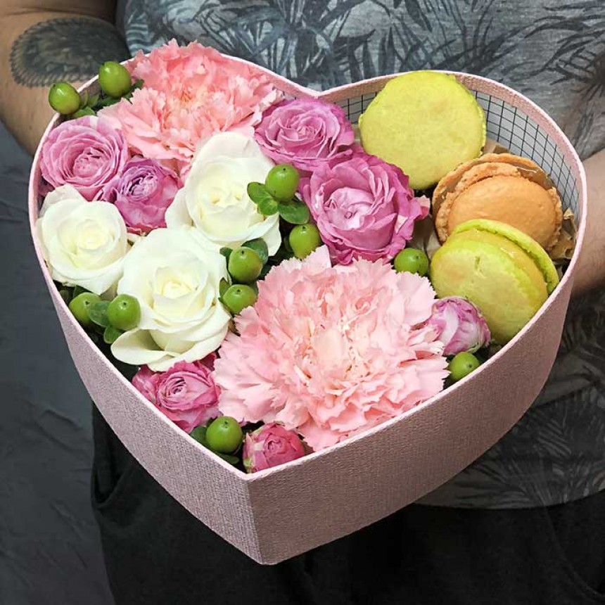 Сердце с цветами и макарунами «Воздушный десерт» - это уникальное произведение искусства от опытных флористов фирмы azalya. Выбирая сердце с цветами и макарунами «Воздушный десерт» вы сможете удивить жену нетипичной композицией. Доставка вашего сердца с цветами и макарунами «Воздушный десерт» по Киеву, крупным городам как Одесса, Кривой Рог, Кременчуг а так же более мелким городам Украины осуществляется на сколько возможно быстро. Наша доставка цветов осуществит все что нужно чтоб вы получили свой замечательный букет, а весь ход дела мы берем на себя!