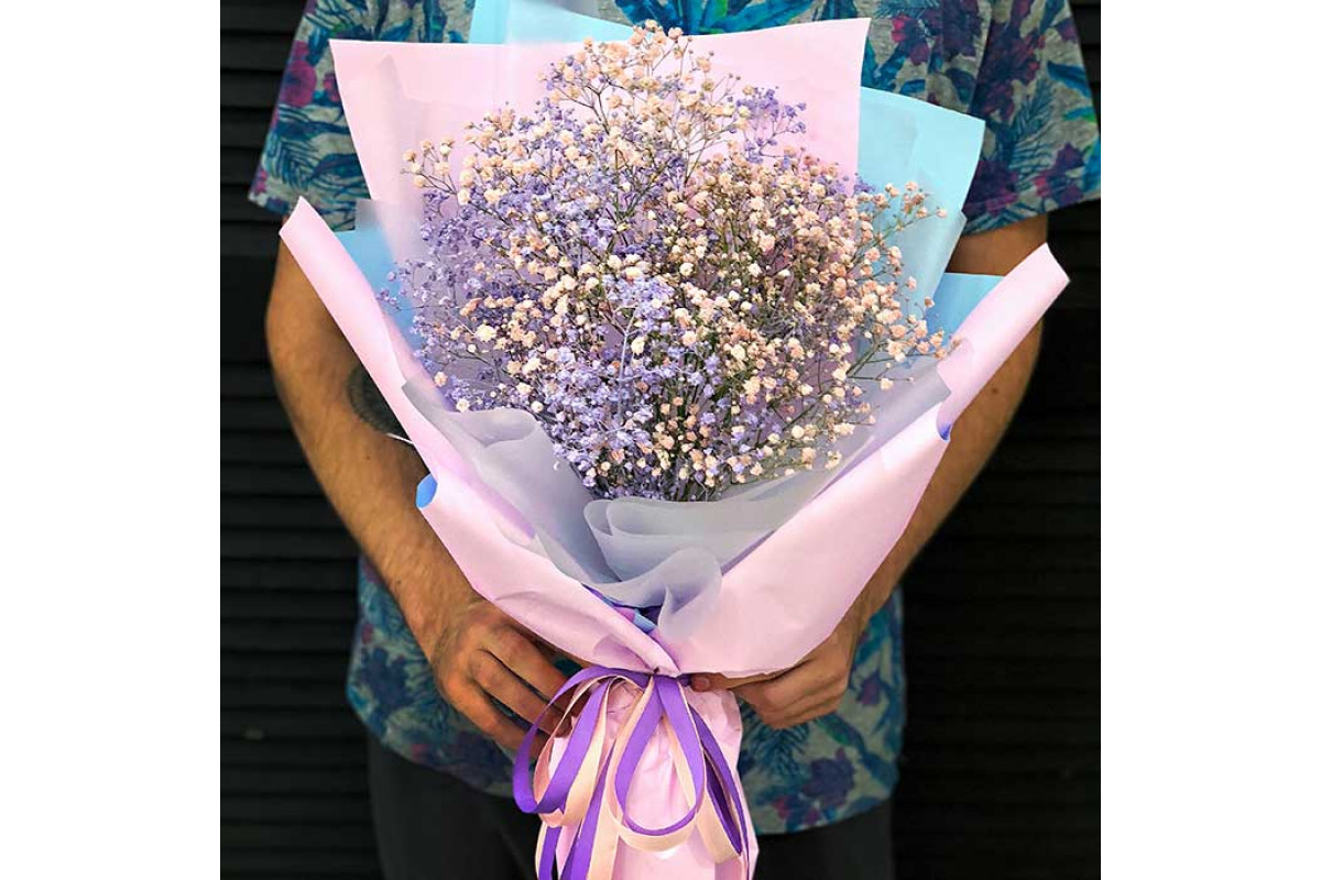 Один з найбільш модних та яскравих трендів у сучасній флористиці – райдужна гіпсофіла. У завжди в наявності кольорова, біла та бузкова гіпсофіла.