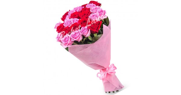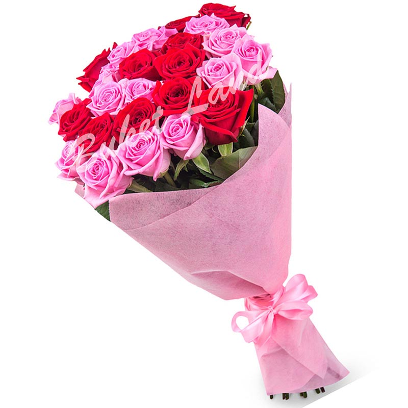 Квіти,Троянда місцева 29 троянд мікс «рожево-червона» 60 см 4698..