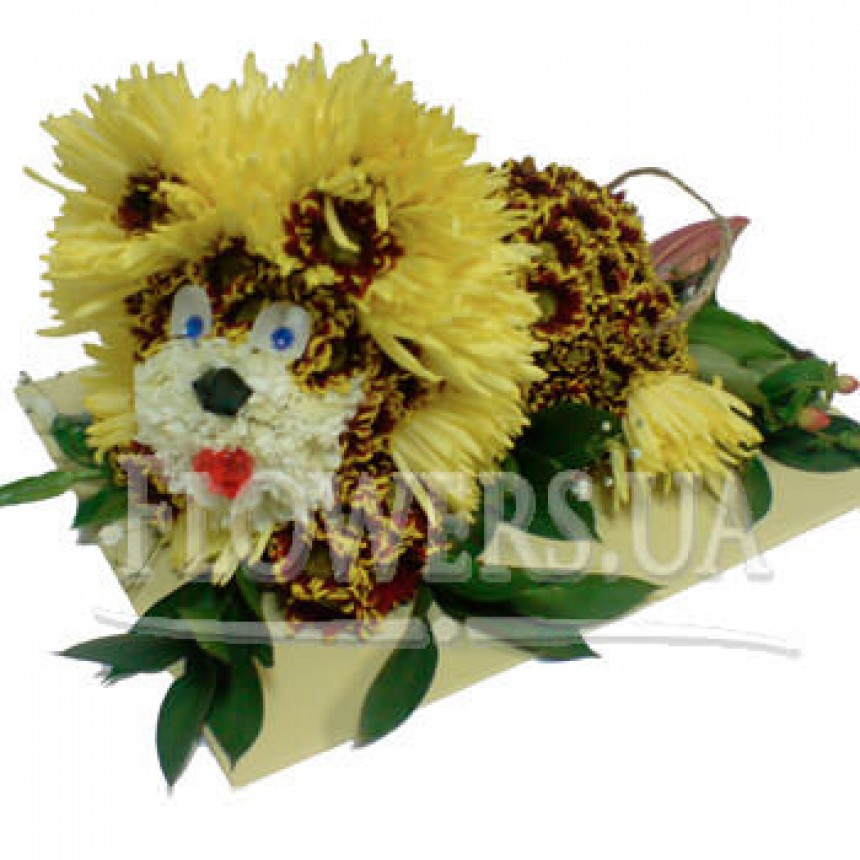 Очаровательная композиция из цветов в виде львенка - удивительный подарок!