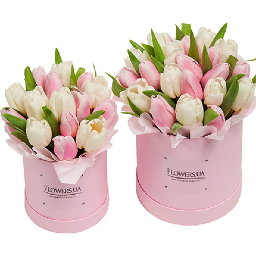 Описание композиции: Идеальное поздравление в солнечный весенний день для самых любимых и единственных женщин: любимой супруги и прекрасной доченьки! Состав композиции (в большой коробке): 21 белый и розовый тюльпан, декоративная коробка, флористический материал.