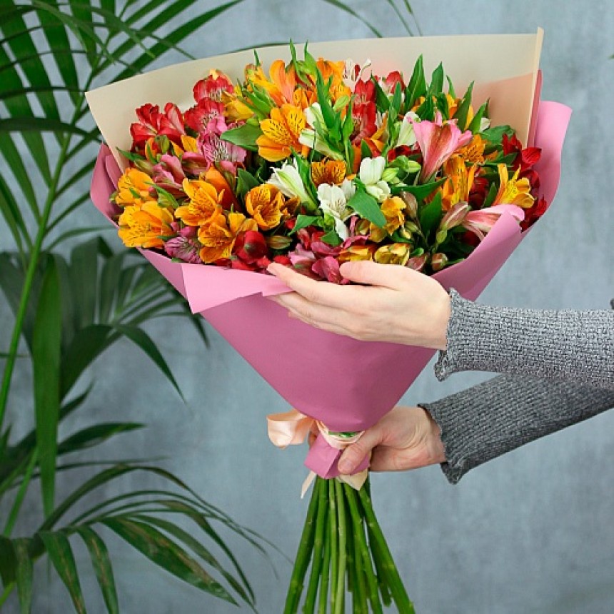 Придбати 25 альстромерій мікс у Києві ❤ на Оболоні з доставкою✅ ви можете у нашому магазині. Якщо виникли питання щодо товару, ви можете написати в наш чат менеджеру і ми з радістю вам допоможемо!
