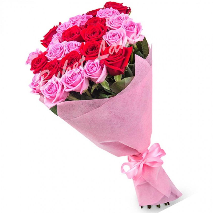 Квіти,Троянда місцева 29 троянд мікс «рожево-червона» 60 см 4698