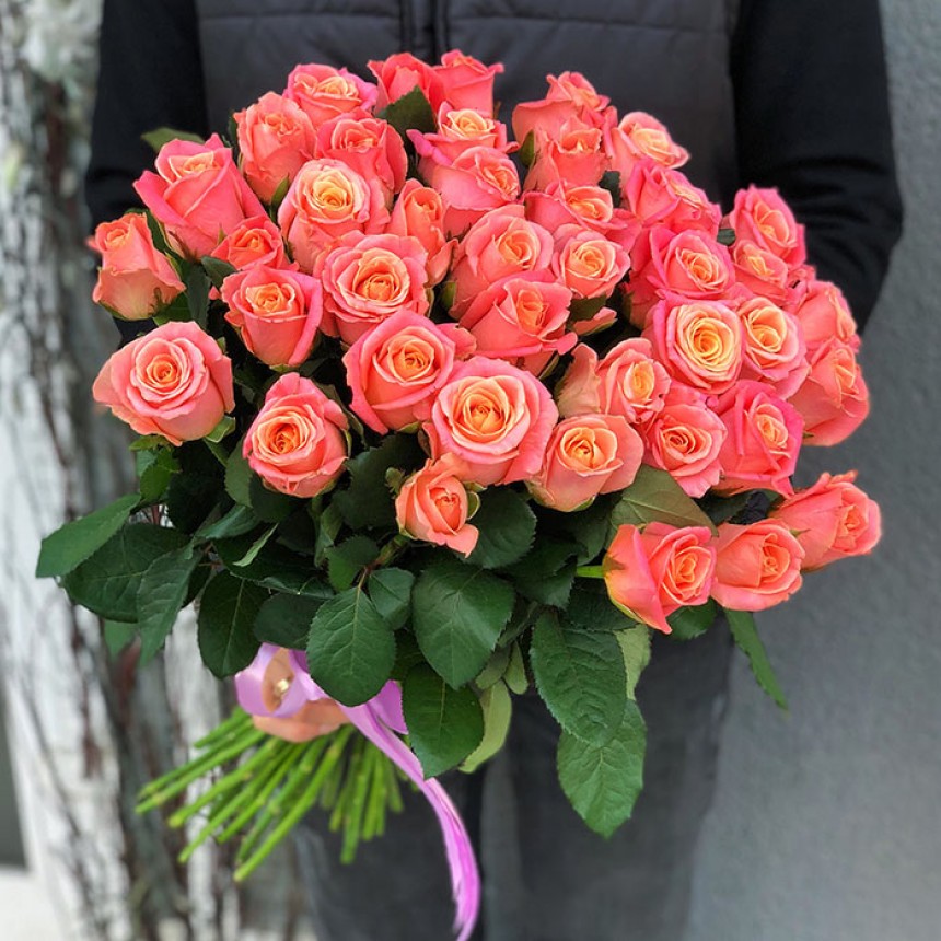 Красива композиція з 51 троянди Міс Піггі довжиною 60 см, складена професійними флористами, чудово підійде як подарунок на будь-яке свято. Квіти цього сорту мають легкий характерний аромат і повністю самостійно і завершено виглядають в композиції завдяки унікальному поєднанню теплих рожевих відтінків, що поступово переходять один в одного. Замовляючи букет з помаранчевої троянди, ви завжди підкреслюватимете свою ніжність і тепле ставлення до людини, якій даруєте такий букет.