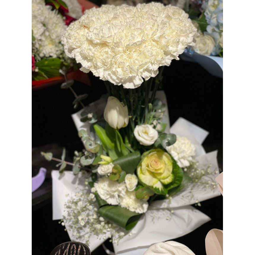 Склад: Гвоздика, гіпсофіла, евкаліпт, еустома, брасика, тюльпан, аспедистра.