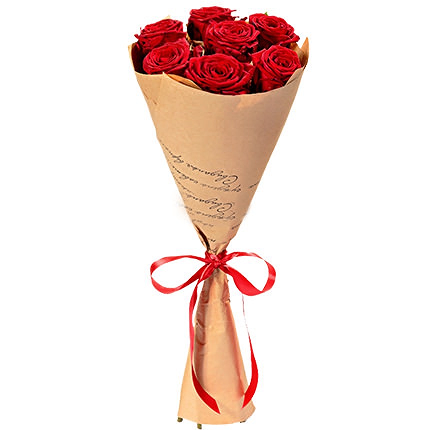 Опис букета: Букет з оксамитових ароматних троянд - ідеальний подарунок з приводу! Склад: 7 червоних троянд, оформлення може відрізнятись.