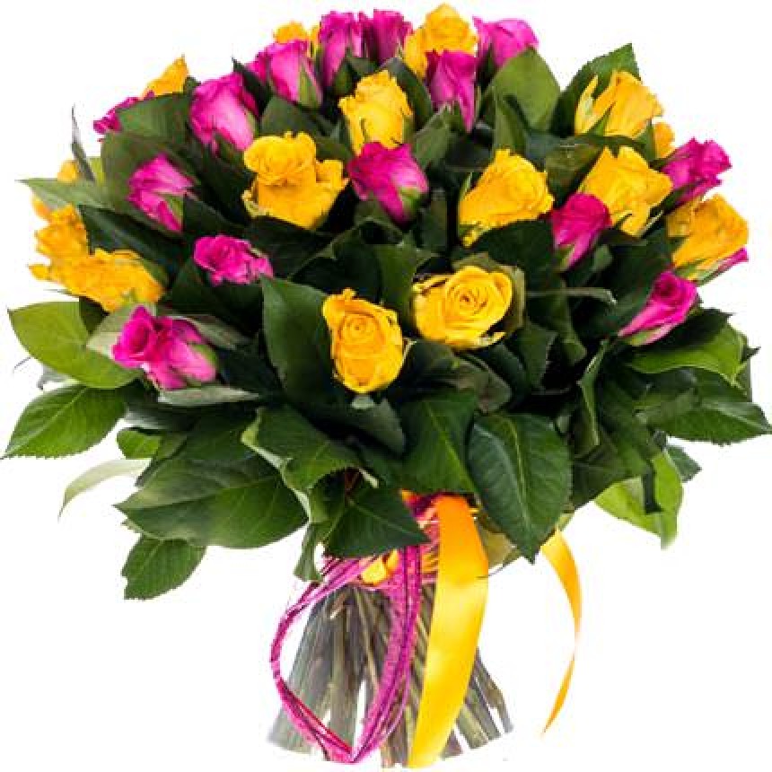 Опис букета:Стильний букет в яскравих тонах створений спеціально для Вашої коханої, яка завжди в курсі модних тенденцій і має чудовий смак! Будьте в тренді! Склад: 31 жовта та рожева троянда, зелень.