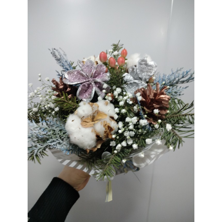 Опис композиції: Шикарний новорічний подарунок для поздоровлення близької людини. Подаруйте незабутні емоції цього нового року! Якщо ви хочете щось сказати людині без слів, тоді квіти – найуніверсальніший спосіб це зробити. Друг, кохана людина, родич, діловий партнер, знаменитість або навіть людина, яку ви майже не знаєте, — всі заслуговують на увагу, виражену у вигляді букета квітів.