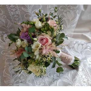 Н. Весільний букет 9, букети, Троянда еквадор, астильба, хамілацум, евкаліпт, еустома