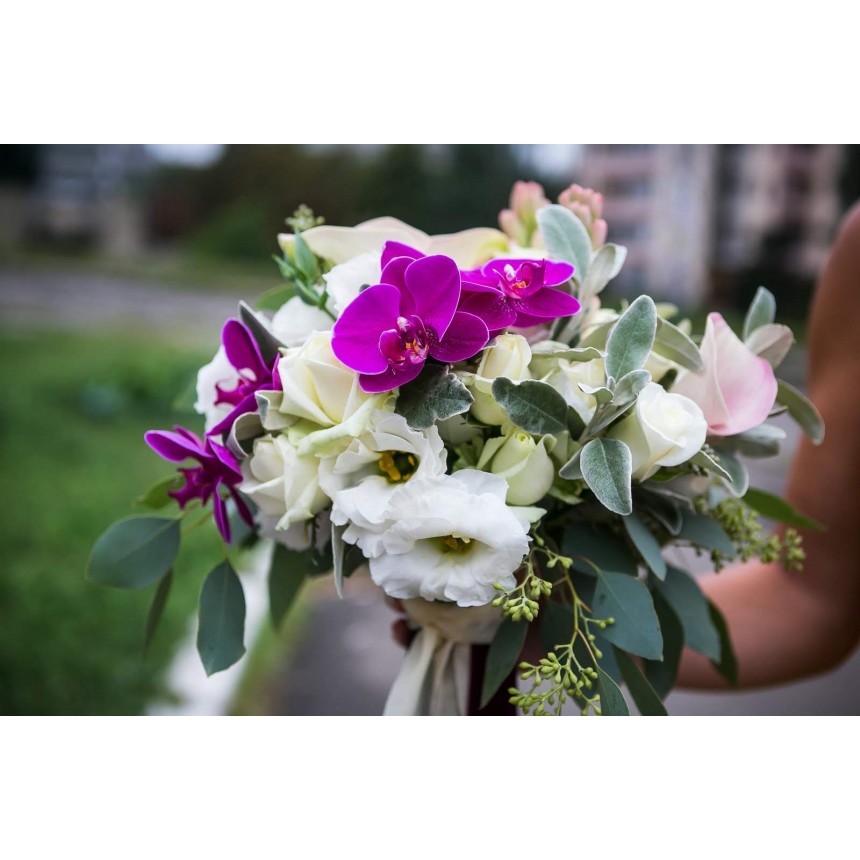 Н. Весільний букет 3, букети, Еустома, троянда авалнч, евкаліпт, орхідея фаленопсис, калла