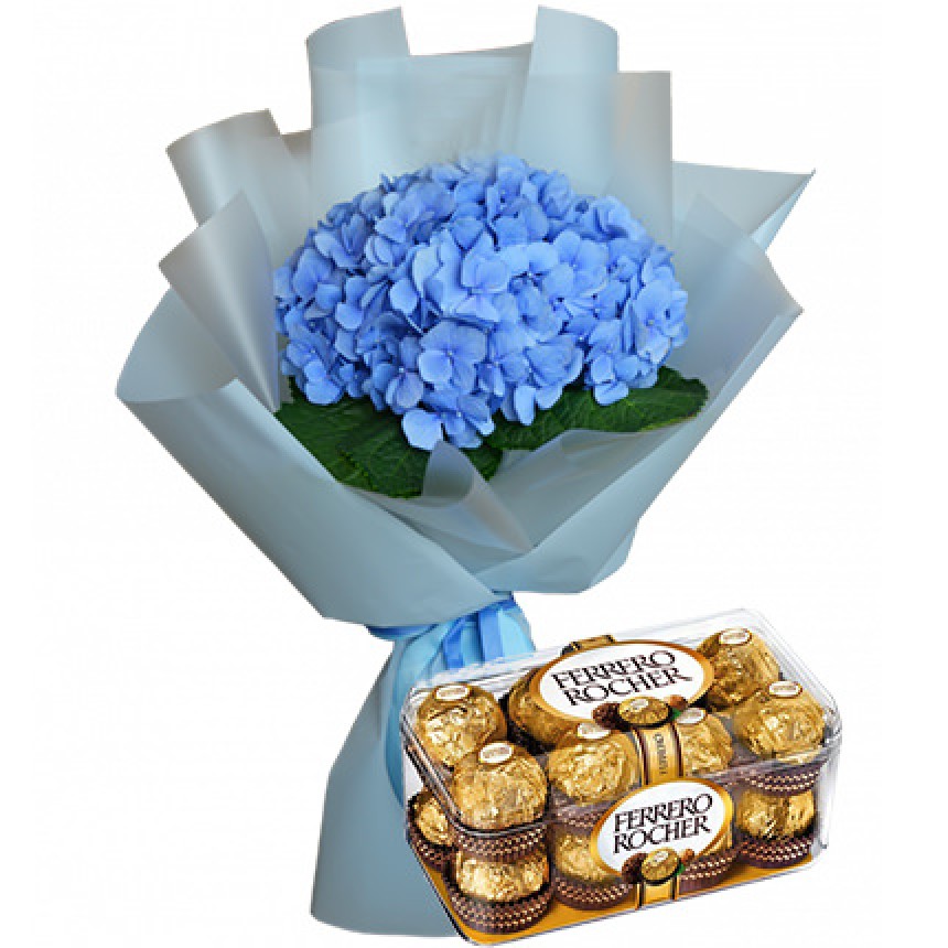 гортензия, оформление, конфеты "Ferrero" - 200 гр.