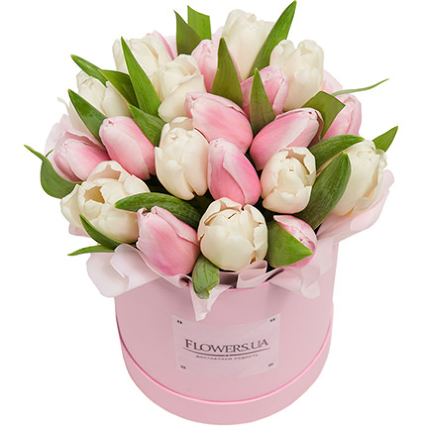 Цветы в коробке "25 белых и розовых тюльпанов"